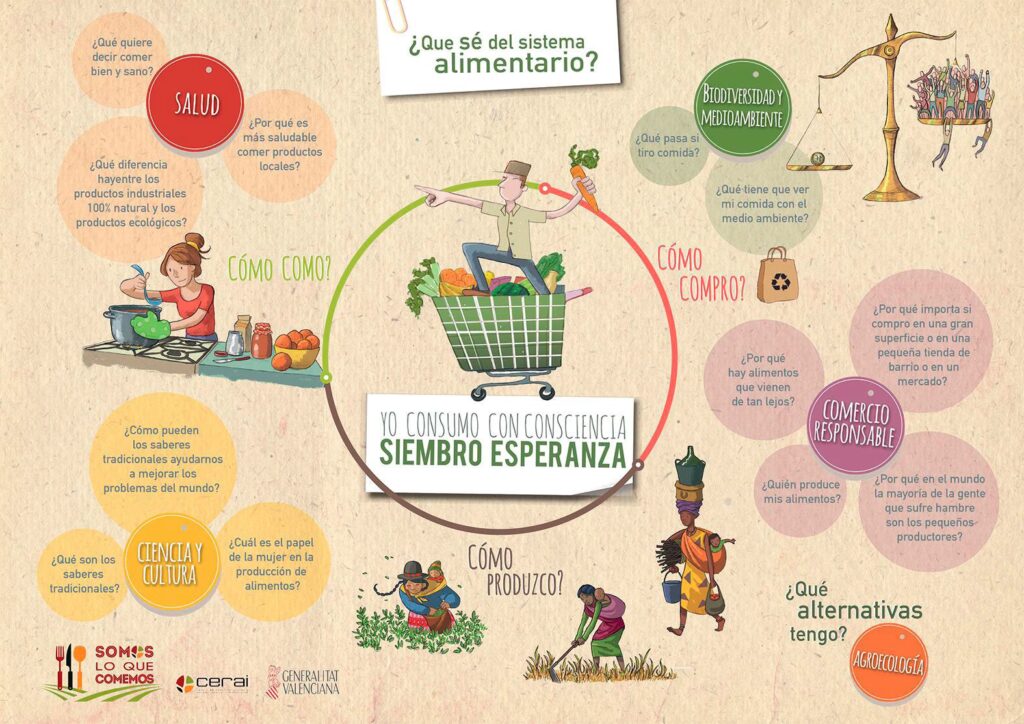 - Pilar Económico: Fomenta una economía local y resiliente. Apoya a pequeños productores, promueve modelos de negocio éticos y valora la durabilidad y la calidad por encima de la cantidad y el bajo precio inmediato.