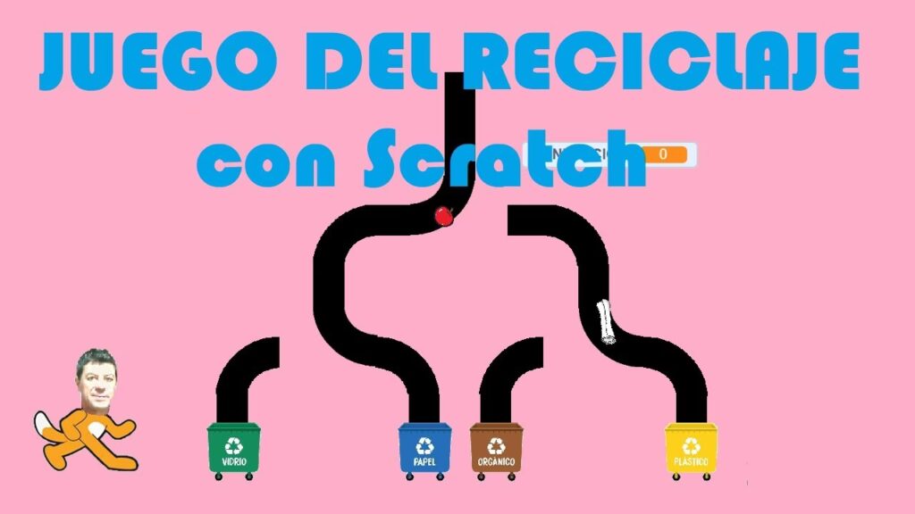Abre Scratch y dibuja un fondo con los cuatro contenedores que has dibujado en tu cartulina. Dibuja o escoge también 4 desechos para reciclar correctamente. La programación es muy sencilla, sólo tienes que programar las flechas del teclado para que los objetos se deslicen por la pantalla hasta el cubo correcto.