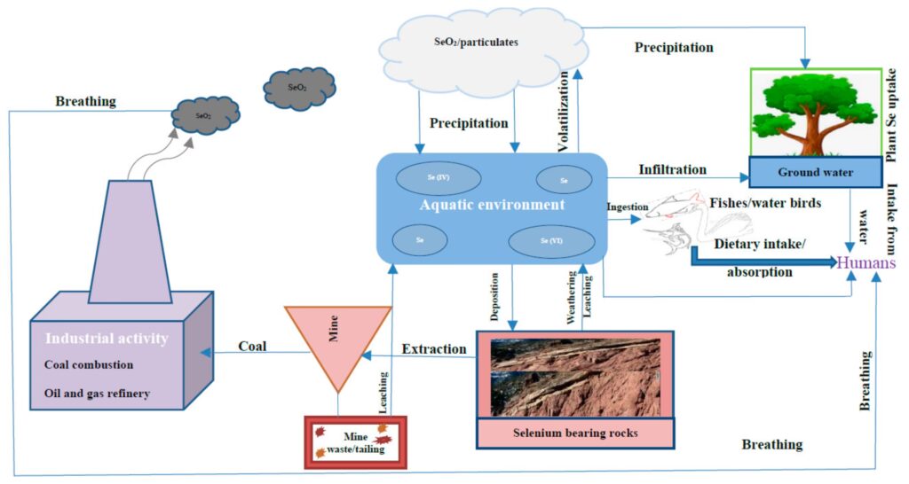 La liberación de selenio en el medio ambiente acuático proviene tanto de fuentes naturales como de actividades humanas, siendo estas últimas las principales responsables del aumento alarmante de la contaminación en las últimas décadas.