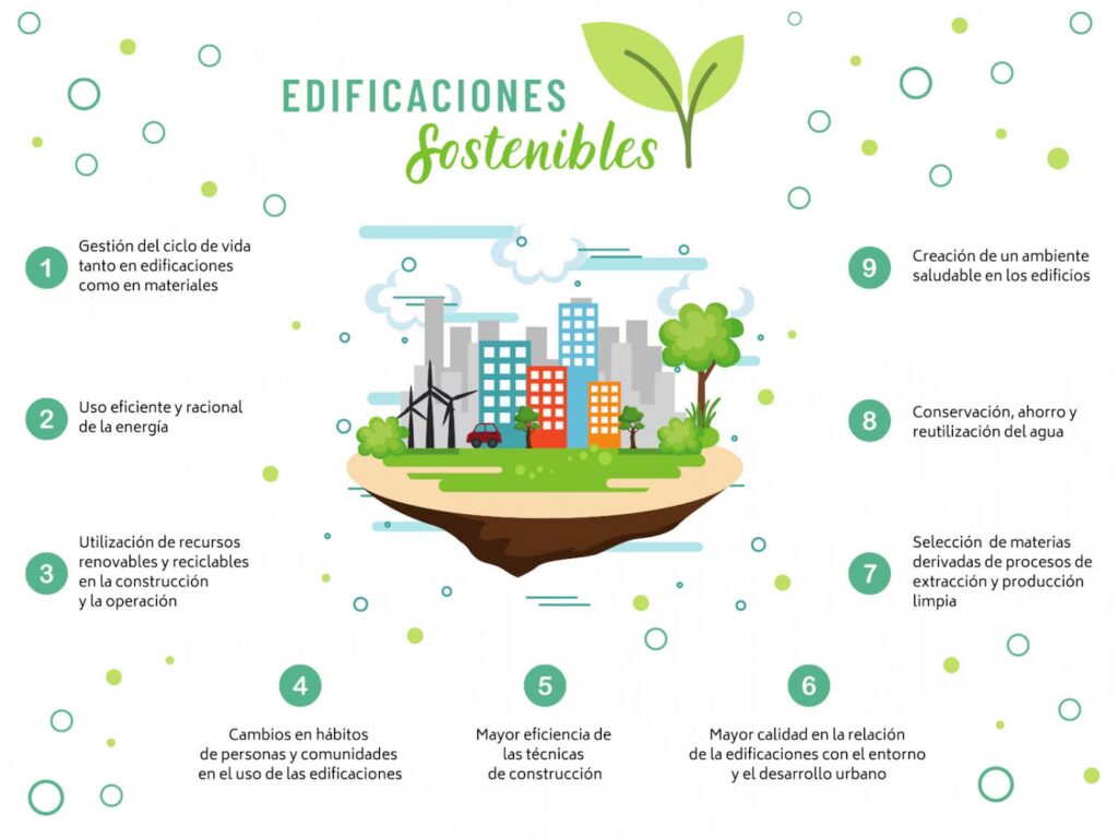 - Energías Renovables: La integración de sistemas como paneles solares fotovoltaicos para generar electricidad, paneles solares térmicos para calentar agua o sistemas de geotermia para climatización, permite que el edificio genere parte o la totalidad de la energía que consume, aspirando a un balance energético neto cero.