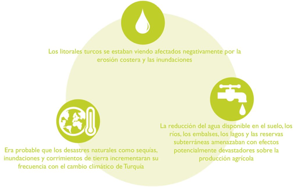 Es un error considerar el cambio climático únicamente como un problema ambiental. Sus repercusiones son profundamente sociales y económicas, amenazando con deshacer décadas de progreso y desarrollo. En Turquía, los efectos del clima ponen en grave riesgo la consecución de varios Objetivos de Desarrollo del Milenio (ODM), ahora integrados en los Objetivos de Desarrollo Sostenible (ODS).